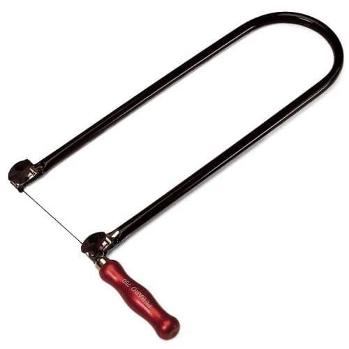 Bonum fret saw, 40cm long, weighing 320g, with black chucks and nickel blades. Uses 13mm blades.