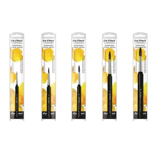 These da Vinci Casaneo Series 1593TP Travel Brushes have practical 2-part artificial horn handles which protect the round, pointed brush heads from bending in transit. The artificial fibres have exceptional elasticity and extremely high ink receptivity. These brushes are ideal for vegan lifestyles as well as for sufferers of animal hair allergies.