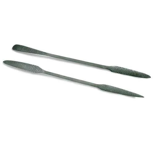 - Item code 52921: one end is oval, flat, curved and pointed, the other end is flat and curved and has a round rasping tip.