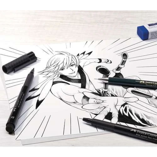 The Faber-Castell Manga Starter Set contains everything you need to get started with manga drawing. It was developed with advice from professional manga artists. The pens can be used on paper, stretcher bars, wood etc.