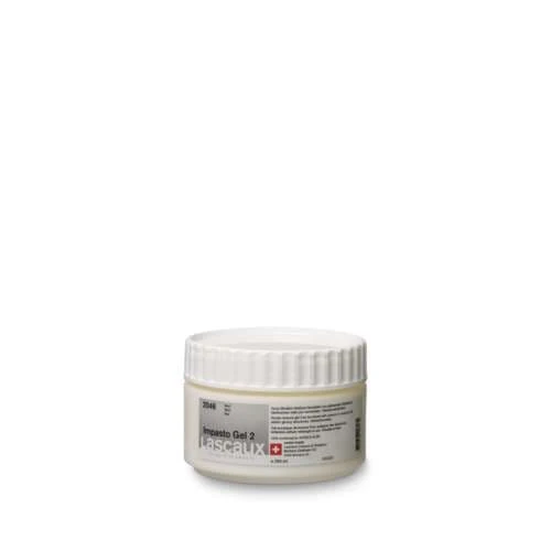 Once dry Lascaux Impasto Gel dries into a clear film with great strength and flexibility and maximum light resistance. It is available in gloss (Impasto Gel 1), matt (Impasto Gel 2), or satin (Impasto Gel 3) in a variety of sizes.