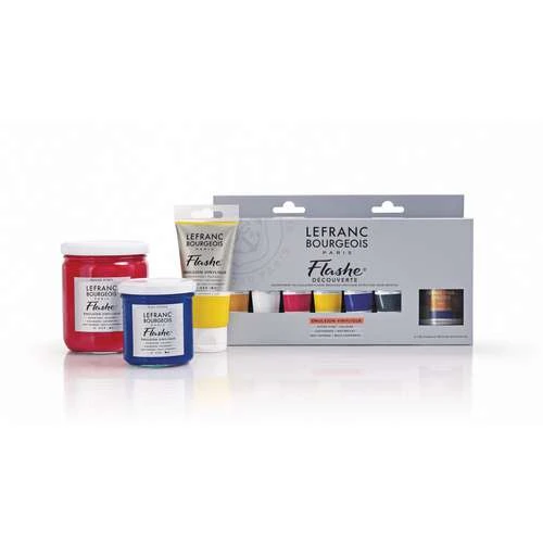 This LEFRANC & BOURGEOIS Flashe® Vinyl Decouverte (Discovery) Set contains 6 x 20ml tubes of Flashe Vinyl Acrylic in the following colours: