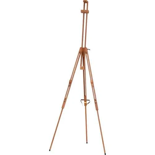 This Mabef basic field easel is 1.85m high and 72cm wide, with a 2.5cm shelf. It weighs 1.9kg and is intended for use with canvases up to 1.15m and 4kg.