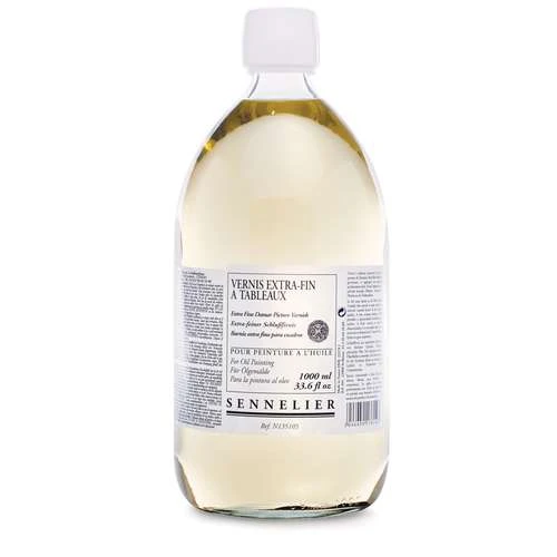 Sennelier Painting Varnish is available in different finishes in 1 litre bottles. These final varnishes are colourless and quick drying.